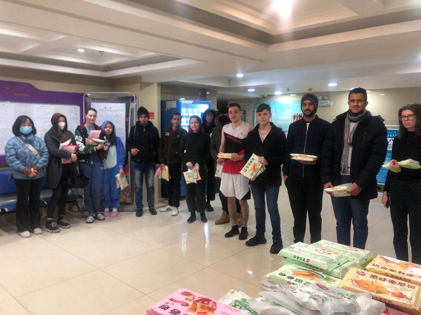 慰问结束,教师代表们又为寒假留校职工送上了饺子、春卷等礼物。一起体验红红火火的中国年。