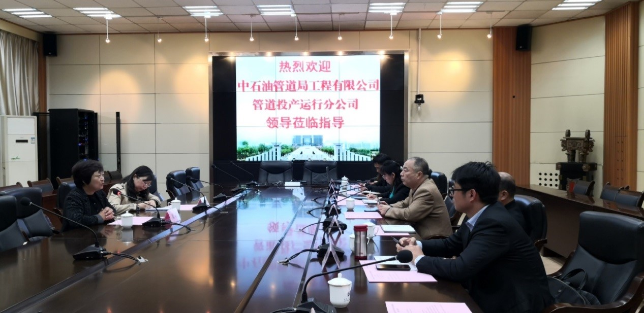 刘威书记代表中油投运公司对公司的热情接待表示感谢,并简要介绍了公司发展历史、发展规模、发展特色、运营模式等,表示将共同努力推进与公司在科研、人才培养、实习实践等方面的长期合作。