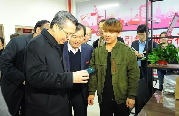 现场,王永康称赞这里的“宝贝”可真多,还说这儿的创新创业氛围浓、有特色,并为创业小伙伴们现场鼓劲加油!