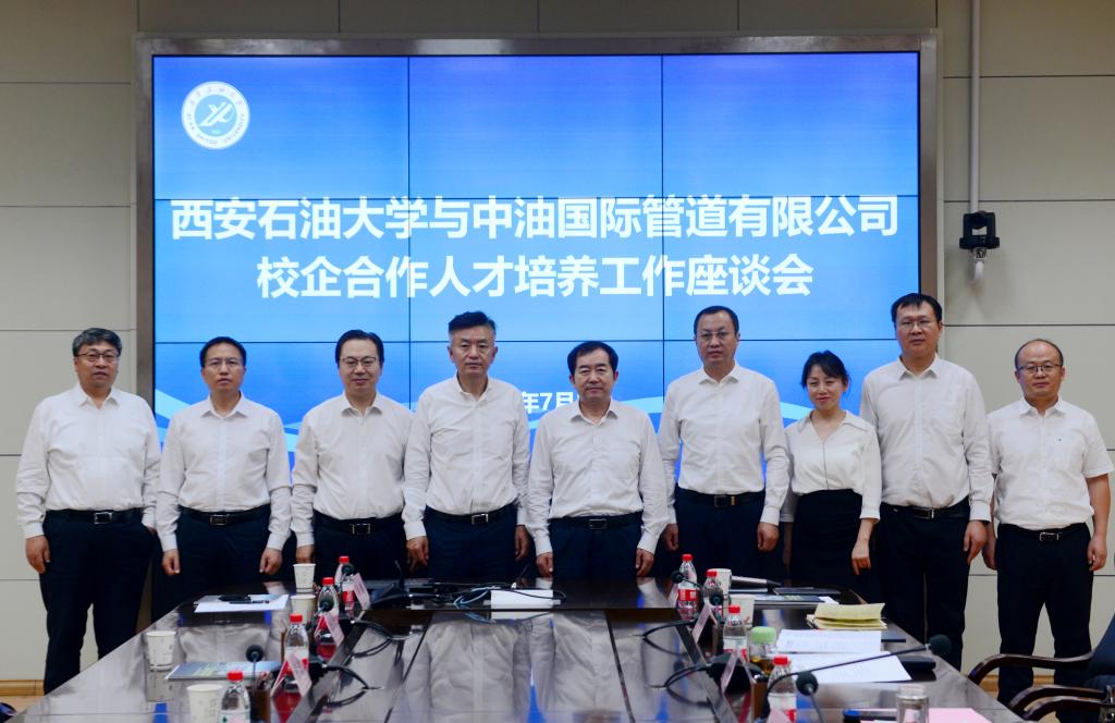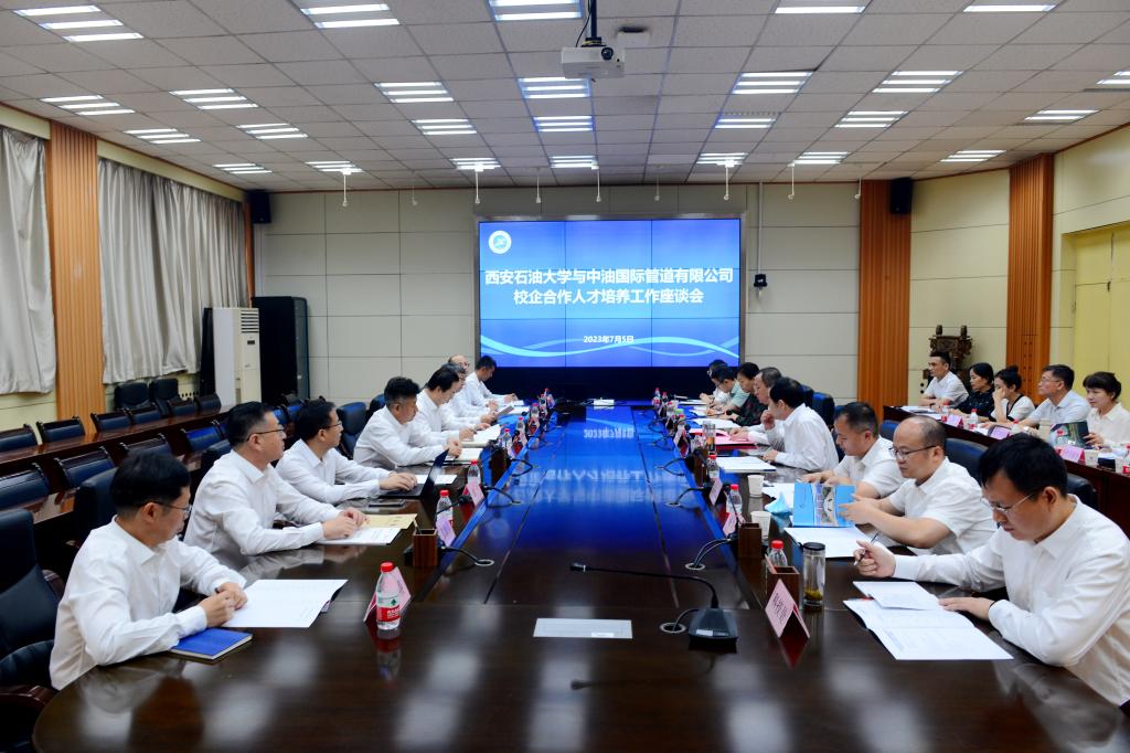 威廉希尔与中油国际管道公司校企合作人才培养工作座谈会在公司雁塔校区会议中心第二会议室举行。公司党委书记赛云秀会前会见了中油国际管道公司执行董事孟向东一行。董事长李天太出席座谈会,副董事长张荣军主持座谈会。