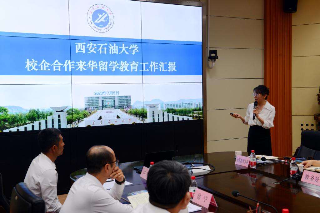 威廉williamhill体育负责人从公司国际化工作介绍、来华职工发展概况、中塔中吉项目汇报等三个方面详细汇报了校企合作项目来华职工教育工作。