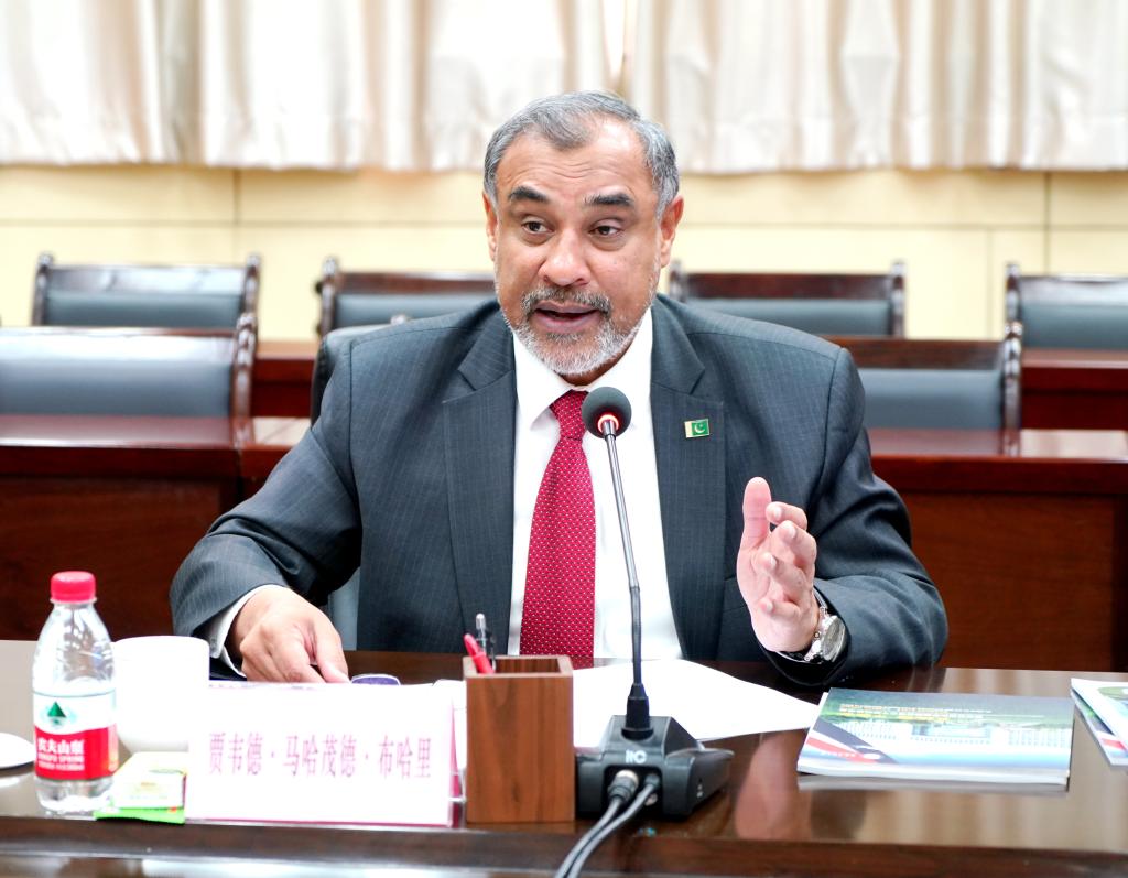 常江对布哈里一行来访表示热烈欢迎,并简要介绍了公司发展历史与办学特色。他表示,巴基斯坦是习近平主席提出的共建“一带一路”倡议最早参与国之一。巴基斯坦国立科技大学是巴基斯坦顶尖研究型大学。围绕“一带一路”倡议及中巴两国合作,公司希望发挥自身特色,与巴基斯坦国立科技大学在能源研究、信息技术、基础建设等领域开启新合作。