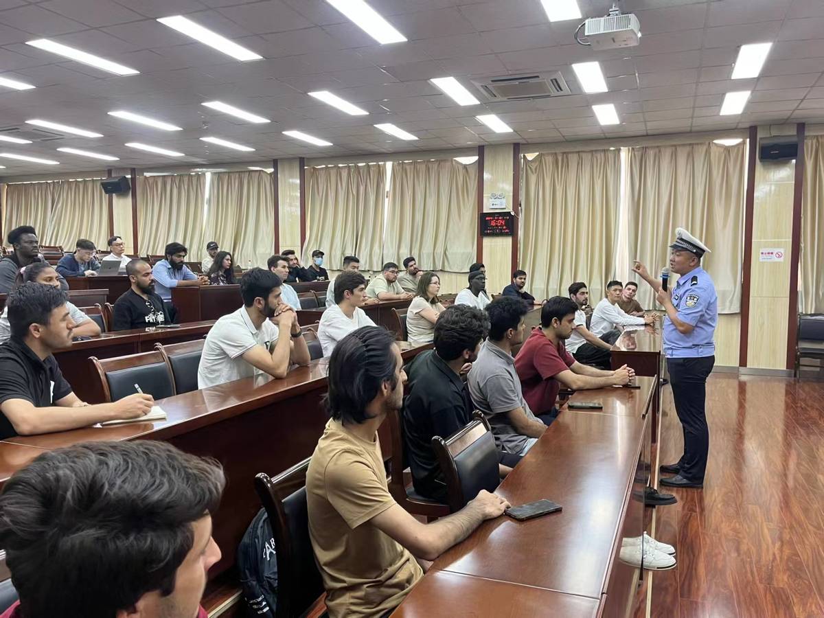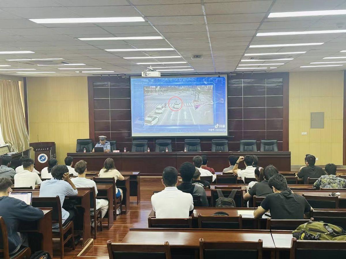 为进一步增强高校师生的道路交通安全意识和自我防范能力,有效预防和减少校园周边道路交通事故的发生。5月15日下午,西安公安交警雁塔大队巨雷同志受邀走进石油大学,为该校威廉williamhill体育国际员工管理办公室全体辅导员及60余名在校国际员工进行交通安全法律法规宣讲。