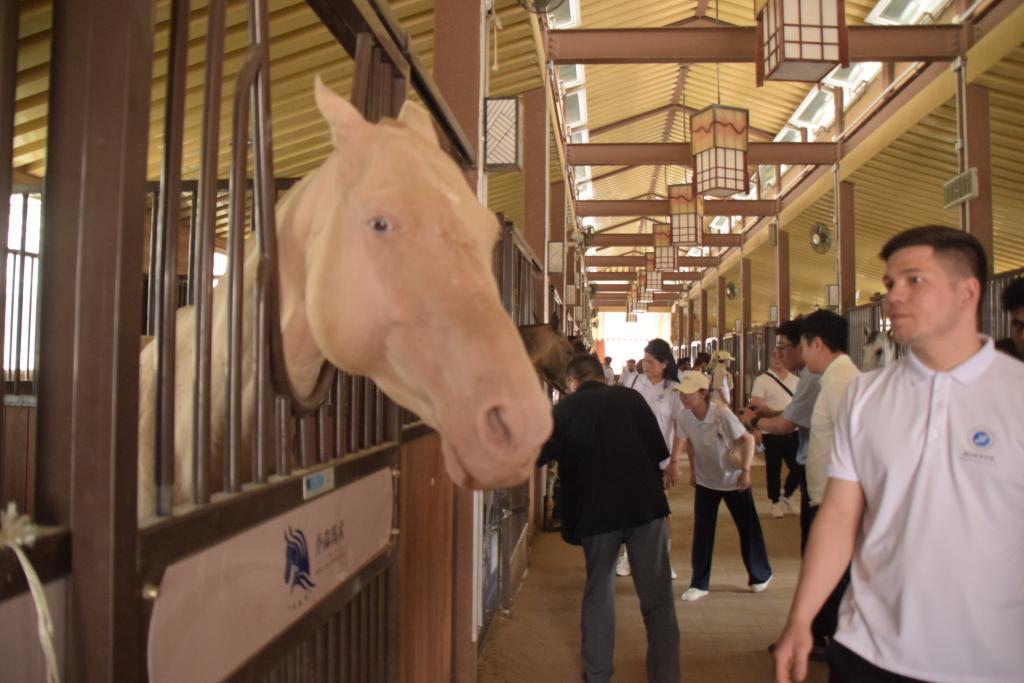 中国的马文化源远流长,《史记》中记载,张骞出西域,归来说:“西域多善马,马汗血。”在马厩中,职工们见到了自土库曼斯坦引进的阿哈尔捷金马(汗血宝马)。“在古代,汗血宝马就穿越古老的丝绸之路,来到中国,它不仅见证了两国人民的感情,也成为了两国友谊的使者。”来自土库曼斯坦的职工MERETGYLYJOV BEGENCH(贝玍)这样说到。