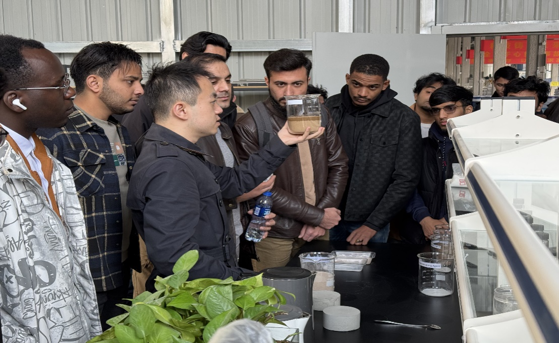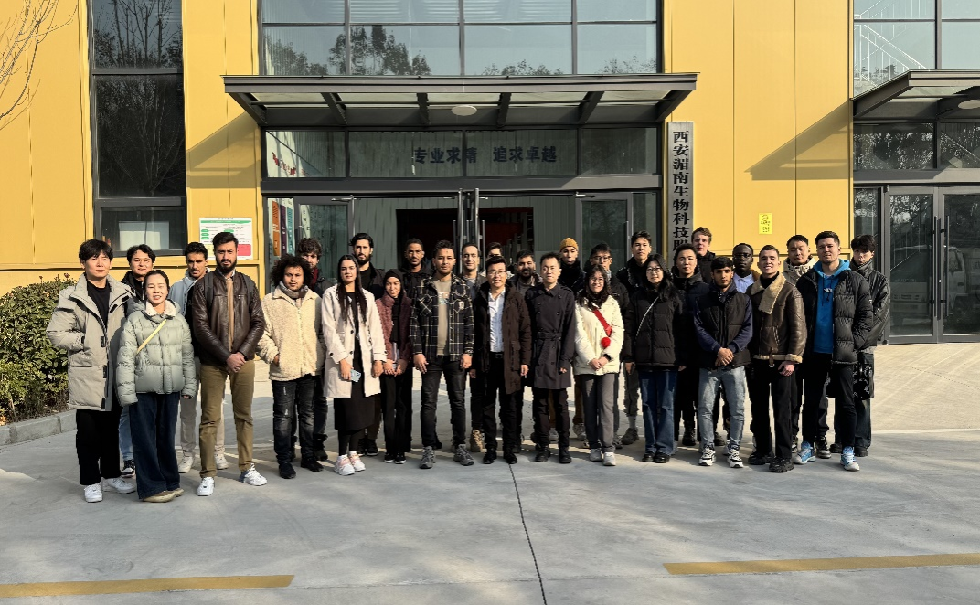 活动开始,职工们来到西安湄南生物科技股份有限公司研发中心,认真观察防沙治沙“黑科技”的合成,并与技术人员交流,询问生产流程和技术细节,感受中国企业为全球荒漠化治理的探索与创新。