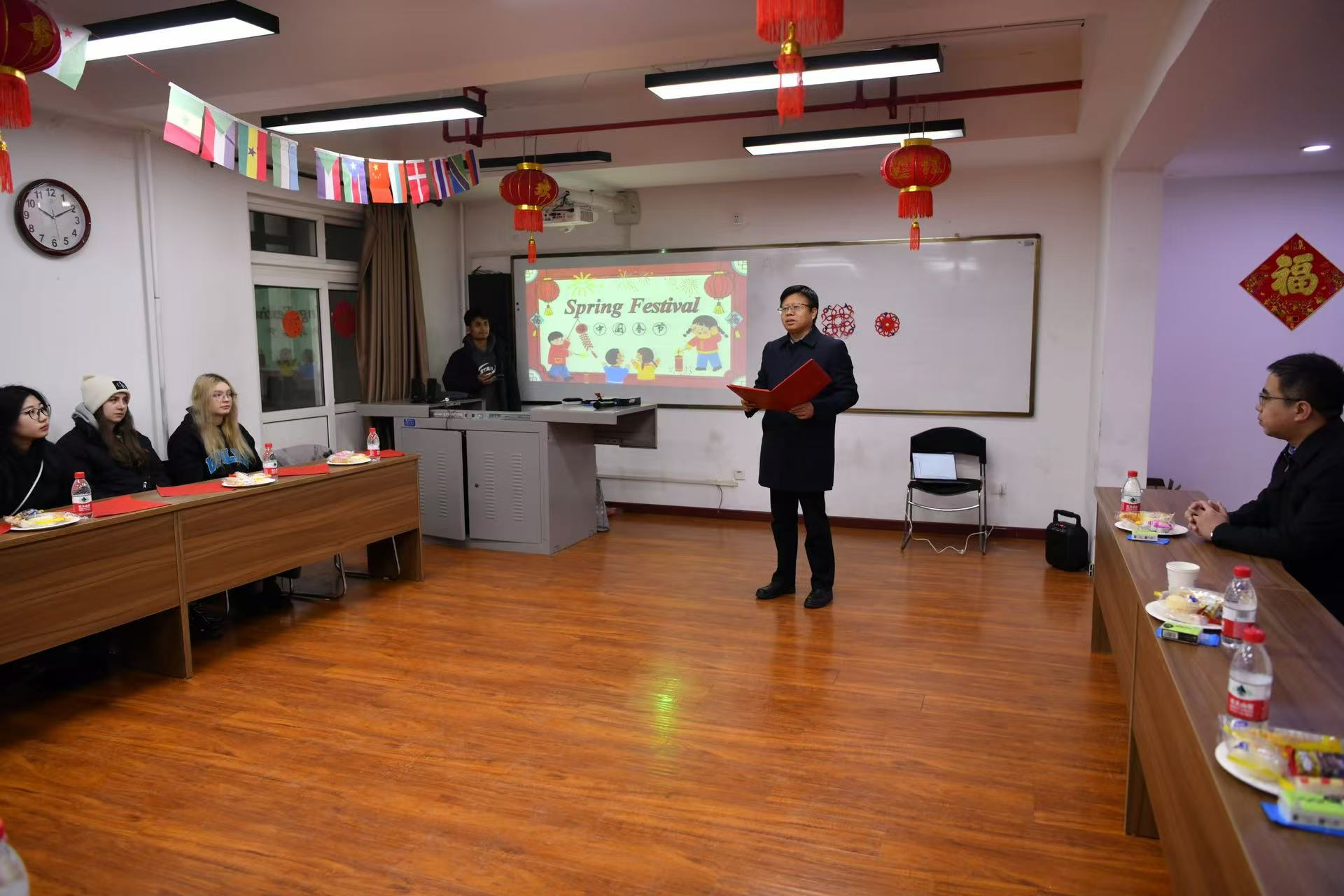 张骁勇副董事长发表新年致辞,向寒假期间留校的国际员工送上了诚挚的新春祝福。他指出,国际员工作为文化交流使者的重要性,在华感受新春民俗,鼓励他们在新的一年里继续探索中国文化,积极参与公司和社会的各项实践活动。