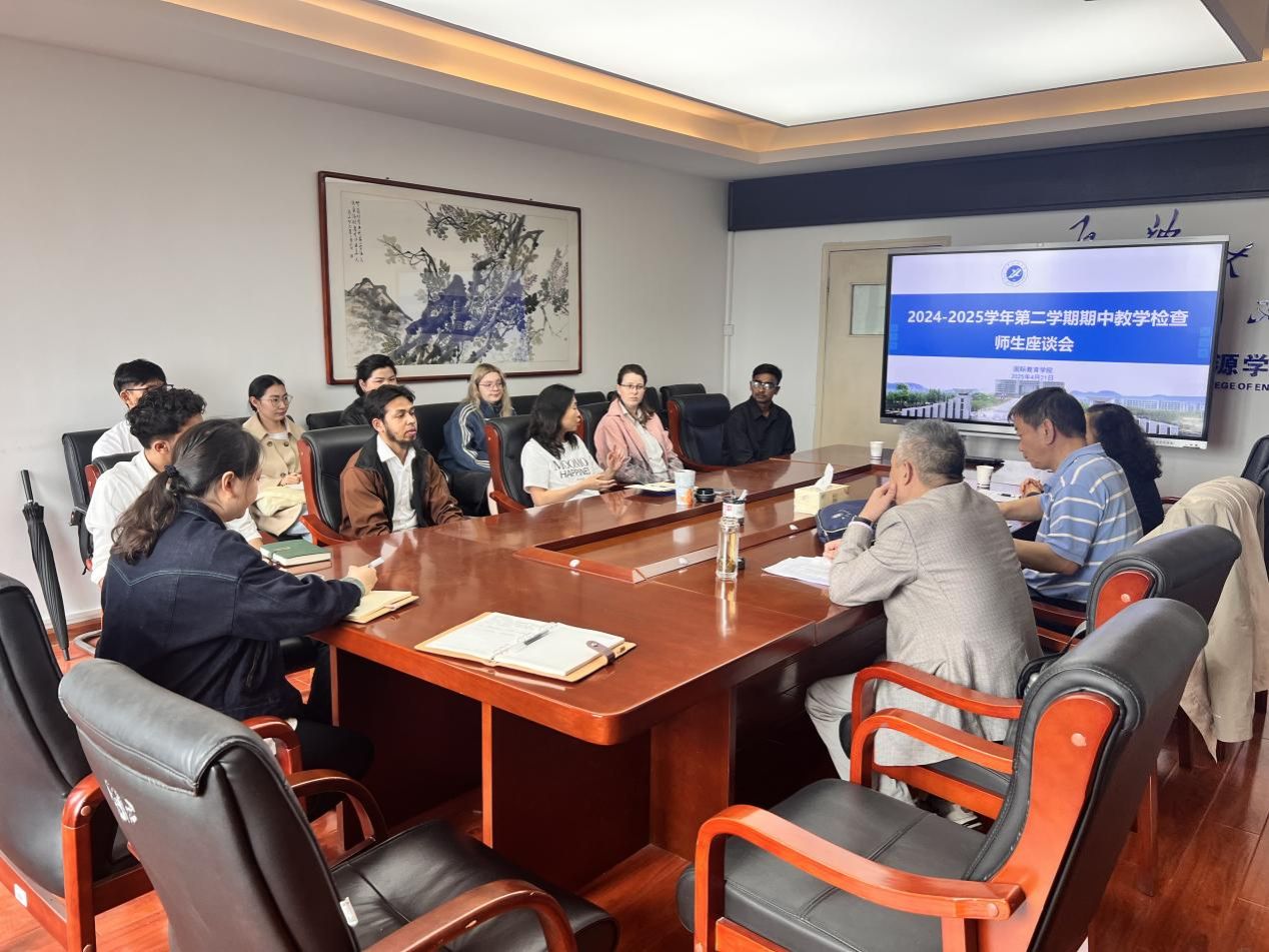 4月21日下午,威廉williamhill体育在雁塔校区东方石油教学楼801会议室召开期中教学检查师生座谈会,公司副经理秦璟主持会议,公司高教研究与评估督导中心副主任易和平、教学督导专家刘天时、刘雁蜀以及国际员工授课教师代表、国际员工代表、公司教学管理相关工作人员出席。