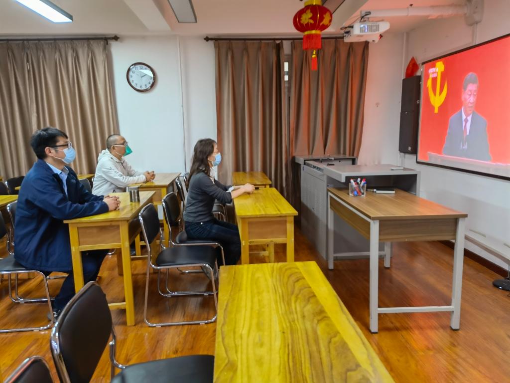 集团静默管理期间,全员党群通过各种方式观看、收听习近平总书记二十大报告