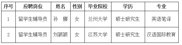 2021年职工辅导员(外聘)拟聘人员公示